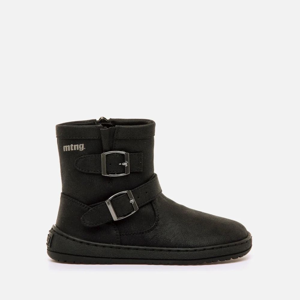 Botines planos de color negro para niña de la marca Mustang, modelo Free de estilo biker. Incorpora dos hebillas metálicas laterales y una cremallera interior que facilita el uso diario. Su diseño con acabado efecto nobuk ofrece un look urbano y funcional. Diseñado y desarrollado especialmente en colaboración con el Dr. Juanjo López, traumatólogo deportivo e infantil, para respetar el desarrollo natural del pie del niño y la niña. Gracias a su puntera ancha permite el libre movimiento de los dedos dentro del zapato. Las plantillas extraíbles facilitan comprobar si la talla del calzado es la correcta para tu hijo. Además, su fácil apertura facilita que el niño pueda descalzarse y calzarse de forma autónoma. Con certificado VEGANO sellado por INESCOP, el cual garantiza que la naturaleza química principal del material no se corresponde con fibras de origen animal.